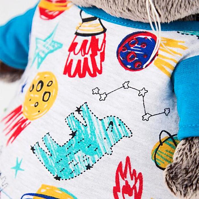 Мягкая игрушка «Басик» в футболке космос и в шапочке, 25 см