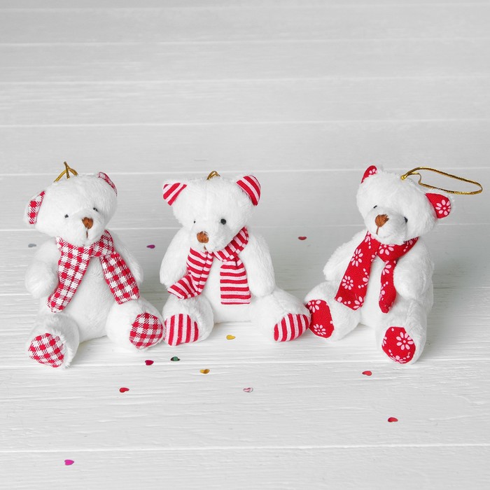 Мягкая игрушка "Белый мишка в шарфике" цвета МИКС