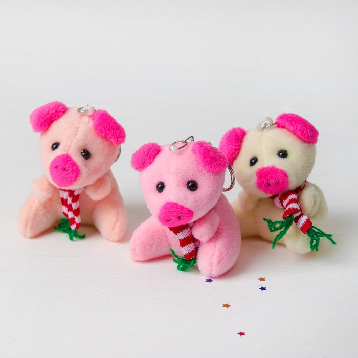 Мягкая игрушка-брелок "Поросёнок в полосатом шарфе" цвета микс