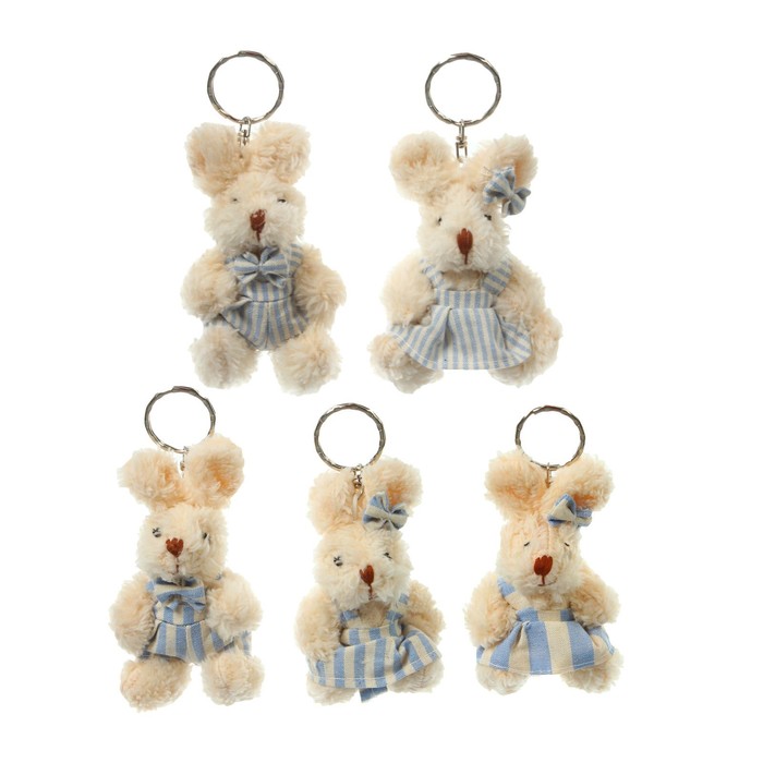 Мягкая игрушка-брелок "Заинька", костюм в полосочку, виды МИКС