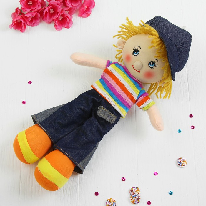 Мягкая игрушка кукла "Паренек" в кепке, цвета МИКС
