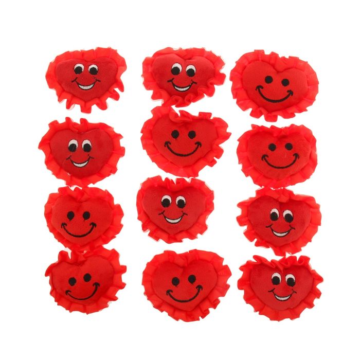 Мягкая игрушка-магнит "Сердце смайлик" по краям оборка, виды МИКС