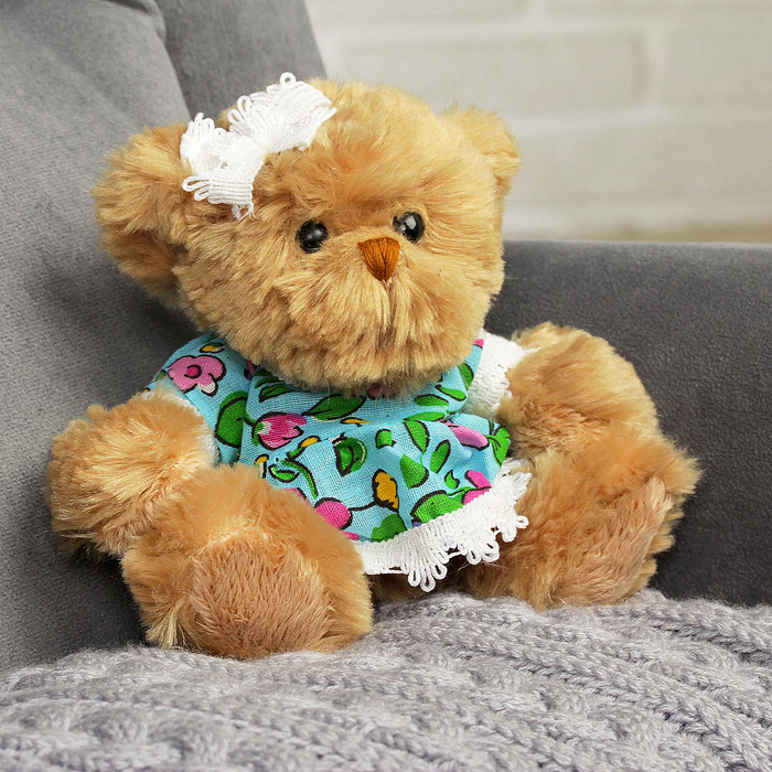 Мягкая игрушка "Медвежонок, девочка в цветочек", 15 см