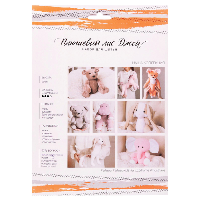 Мягкая игрушка «Плюшевый лисёнок Джой», набор для шитья, 18,5 × 22,8 × 2,5 см
