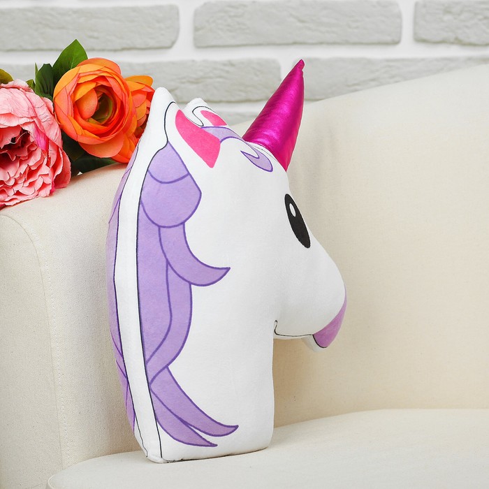 Мягкая игрушка-подушка "Единорог" двухсторонняя, сиреневая грива