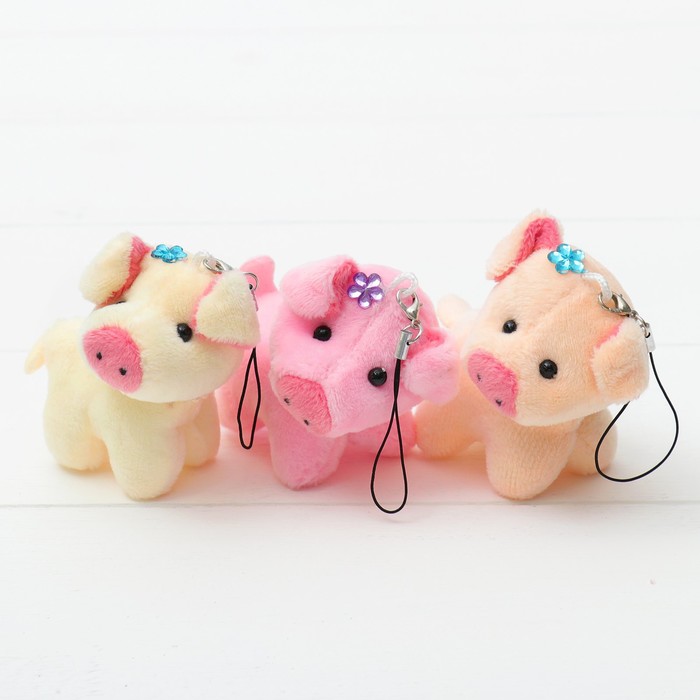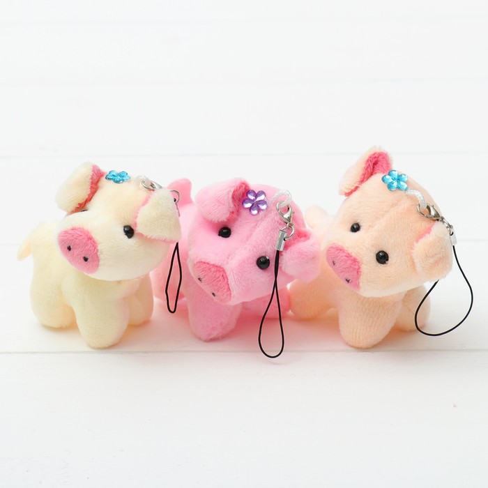 Мягкая игрушка-подвеска "Хрюша" на шее бусы, цвета микс