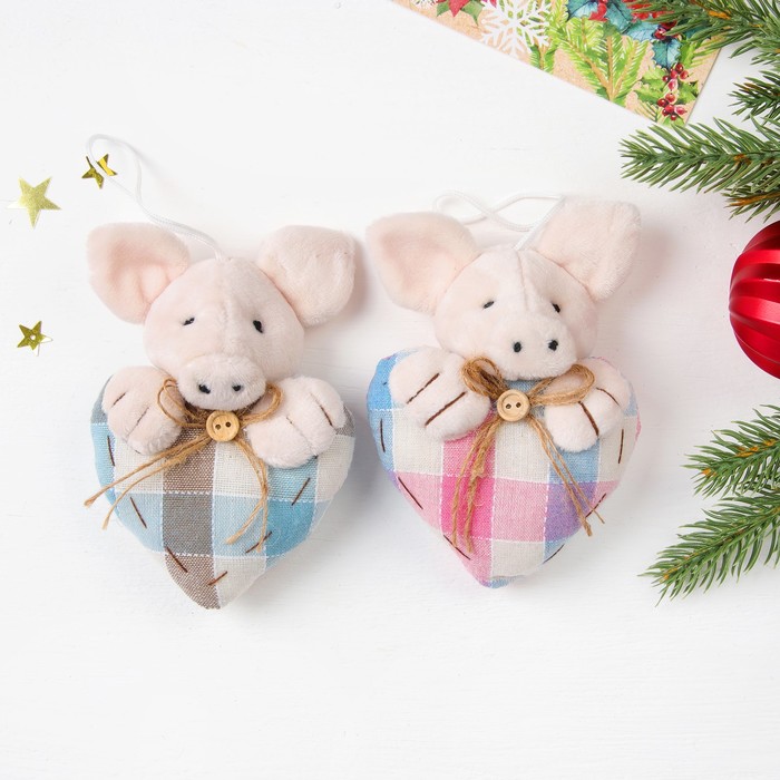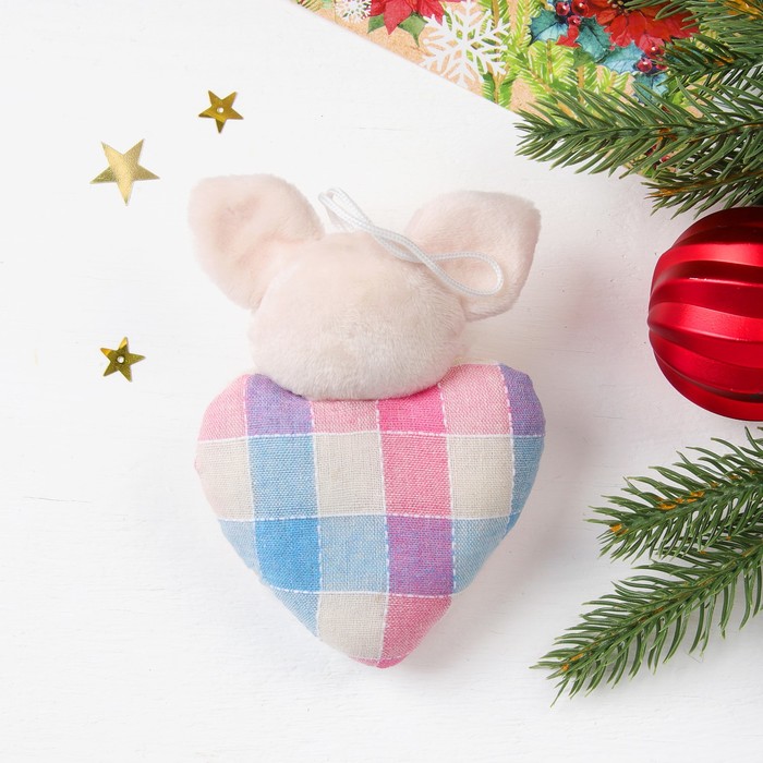 Мягкая игрушка-подвеска "Хрюша" сердечко клетка, цвета МИКС