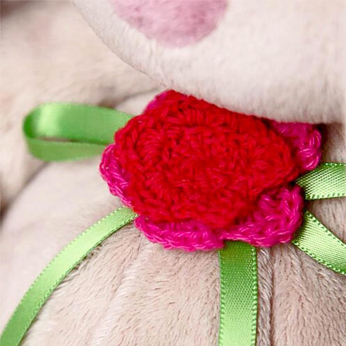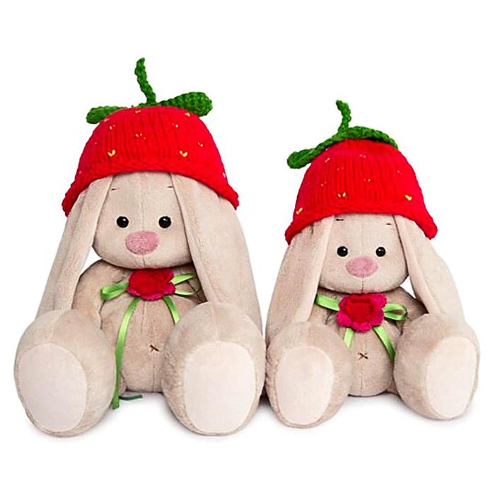 Мягкая игрушка "Зайка Ми" в вязаной шапке "клубничка", 18 см