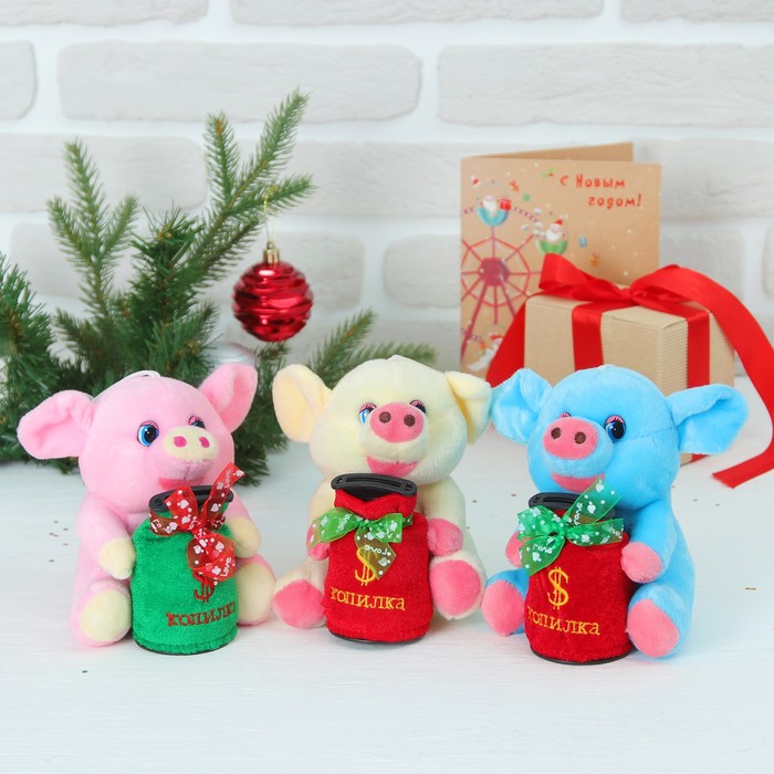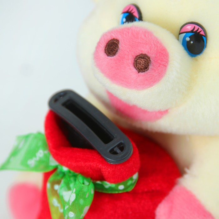 Мягкая музыкальная игрушка-копилка "Хрюша" с бантиком, цвета микс