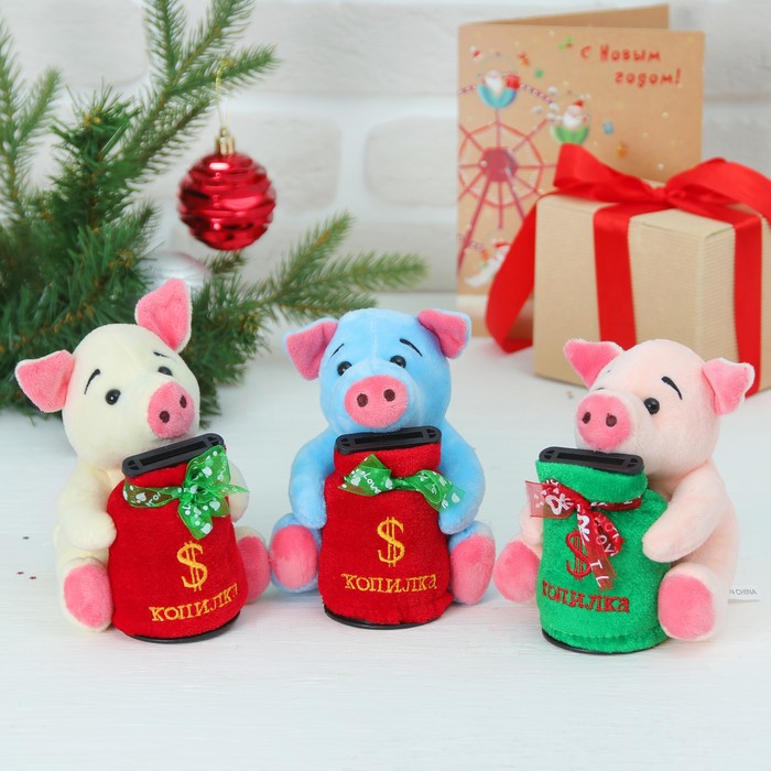Мягкая музыкальная игрушка-копилка "Поросёнок" цвета микс
