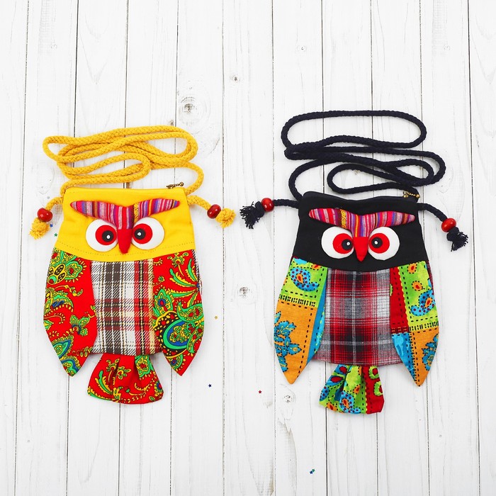 Мягкая сумочка "Совушка" лоскутная, цвета МИКС, 23 см