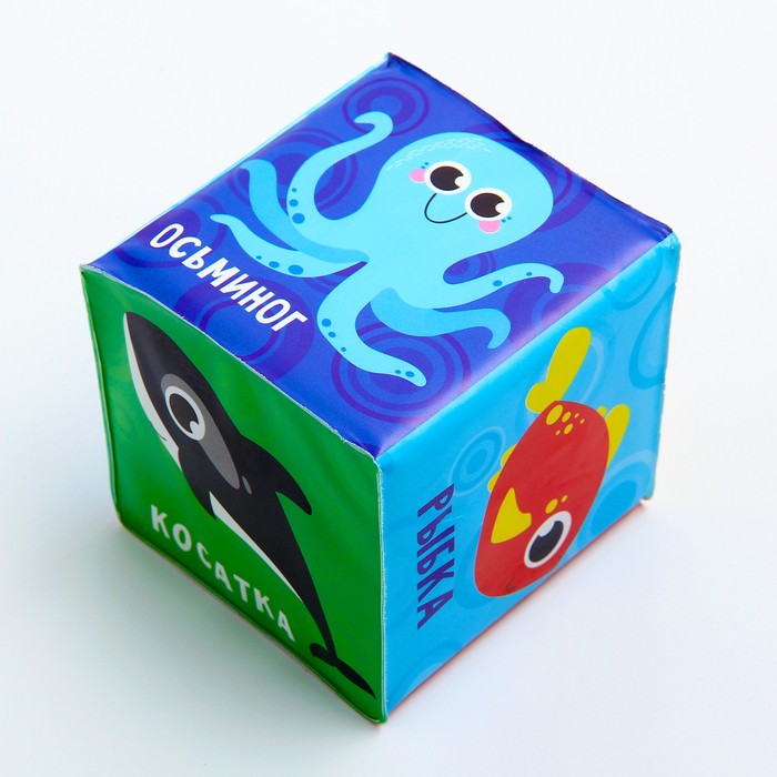 Мягкие кубики «Морские животные + Предметы» со свистулькой, размер 7х7 см, для купания, набор 2 шт.