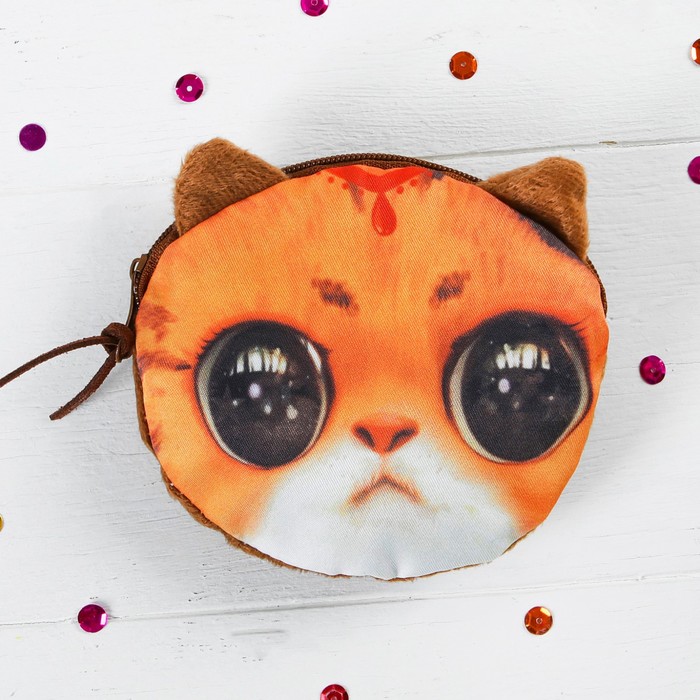 Мягкий кошелёк "Киска", большие глазки, белая мордочка создан специально для юных модниц. Красочная мордочка животного с 3D-эффектом на лицевой части изделия смотрится впечатляюще. Огромные глаза заворожат не только счастливую обладательницу мини-сумочки, но и всех окружающих.