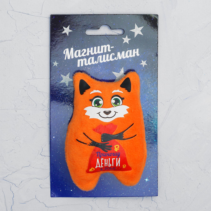 Мягкий магнит-талисман "Приношу едньги в дом!"лисичка