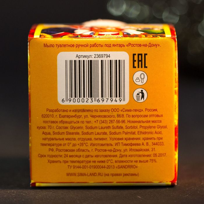 Мыло ручной работы под янтарь «Ростов-на-Дону», 70 г