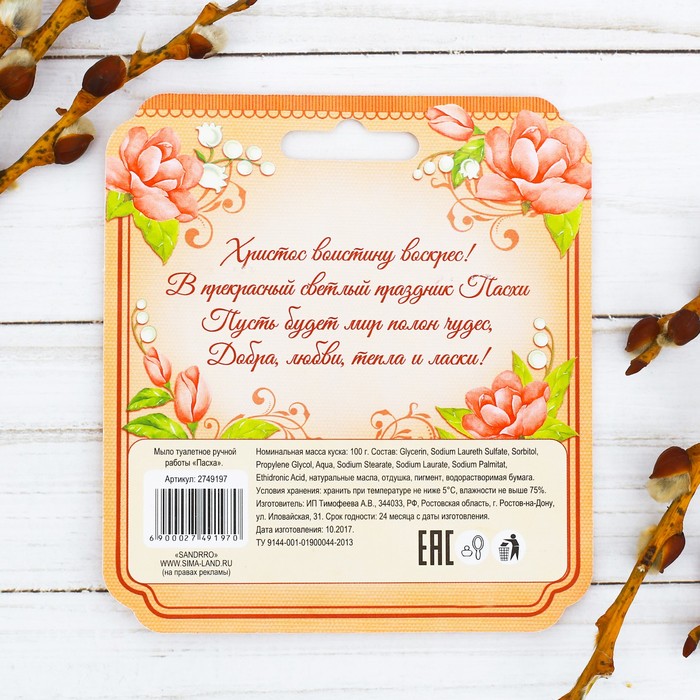Мыло сувенирное ручной работы «Пасха»