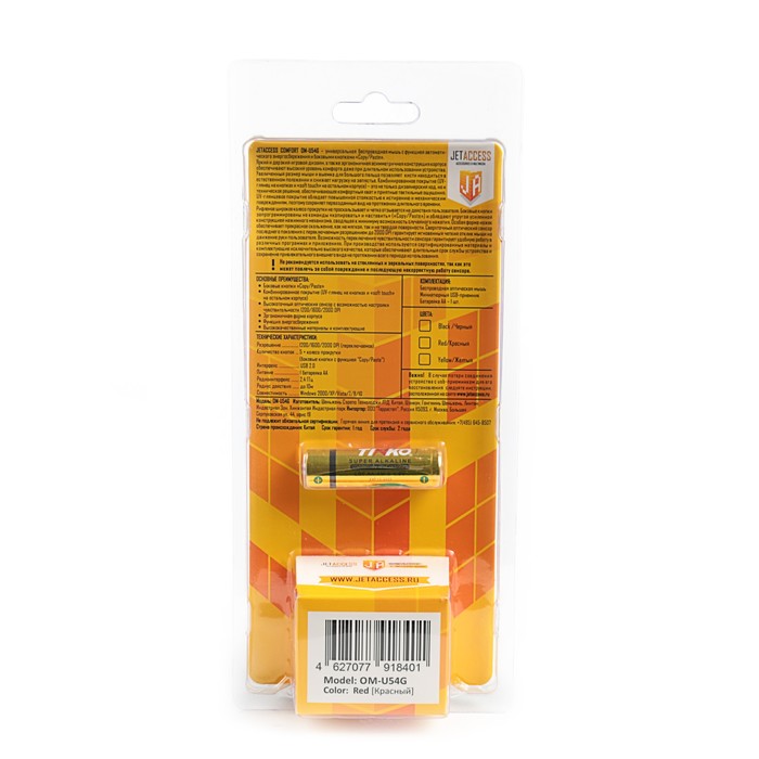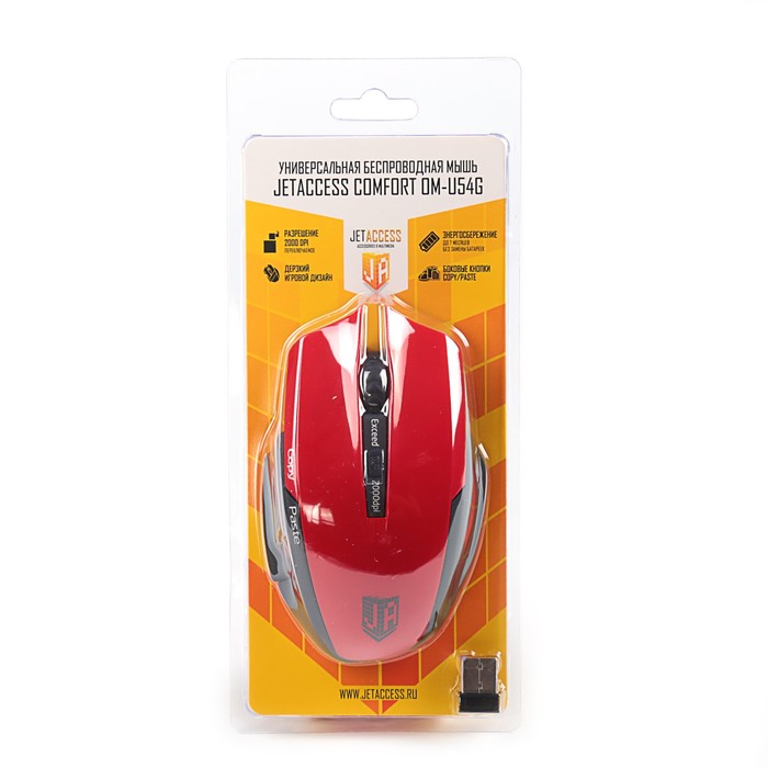 Мышь беспроводная Jet.A Comfort OM-U54G красная (1200/1600/2000dpi, 5 кнопок, USB)