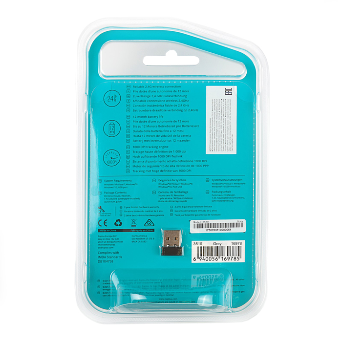 Мышь беспроводная Rapoo 3510, grey подходит для выполнения разных задач, может использоваться в офисе или дома. Подключается к компьютеру или ноутбуку.