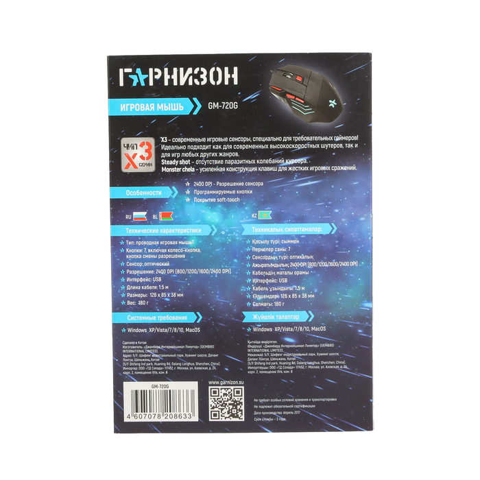 Мышь игровая Гарнизон GM-720G, "Хара" подходит для выполнения разных задач, может использоваться в офисе или дома. Подключается к компьютеру или ноутбуку.