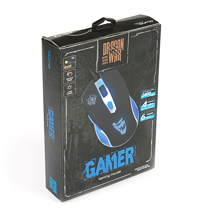 Мышь Qumo Gamer, проводная, 2400 DPI, 6 кнопок, подсветка