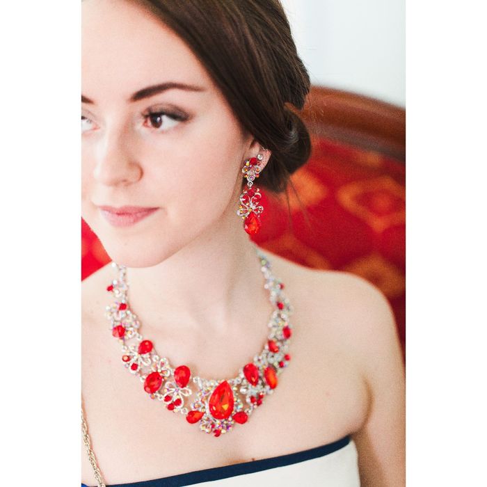 Ни один стиляга не будет выглядеть современно без искусно подобранных украшений, которые завершат его образ! Бижутерия — это современная недорогая альтернатива изделиям из золота и прочих драгоценных металлов. Набор 2 предмета: серьги, колье "Шальная императрица" красный АВ, в серебре — это то, что добавит вам шарма!