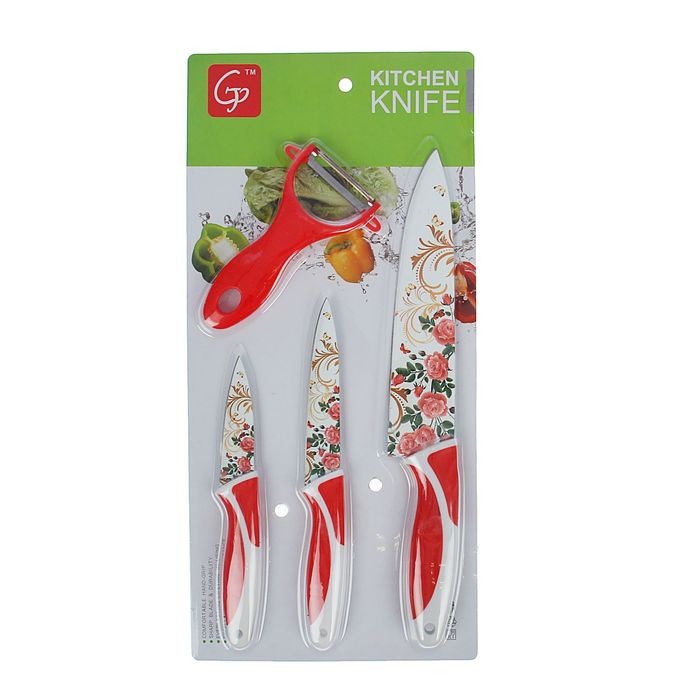 Набор 4 предмета: 3 ножа 8,5/12,5/19,5 см, овощечистка
