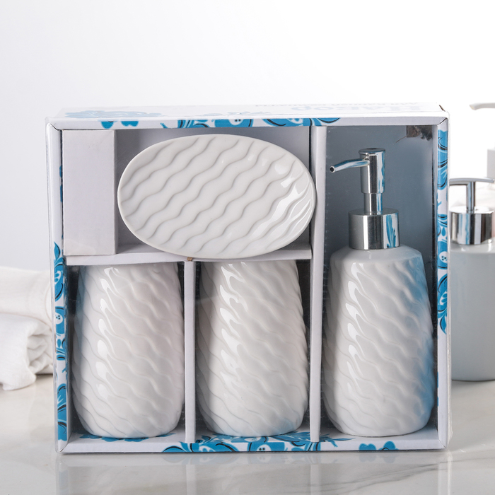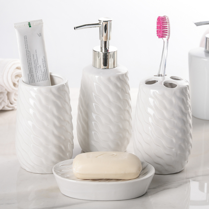Набор аксессуаров для ванной комнаты, 4 предмета, цвет белый