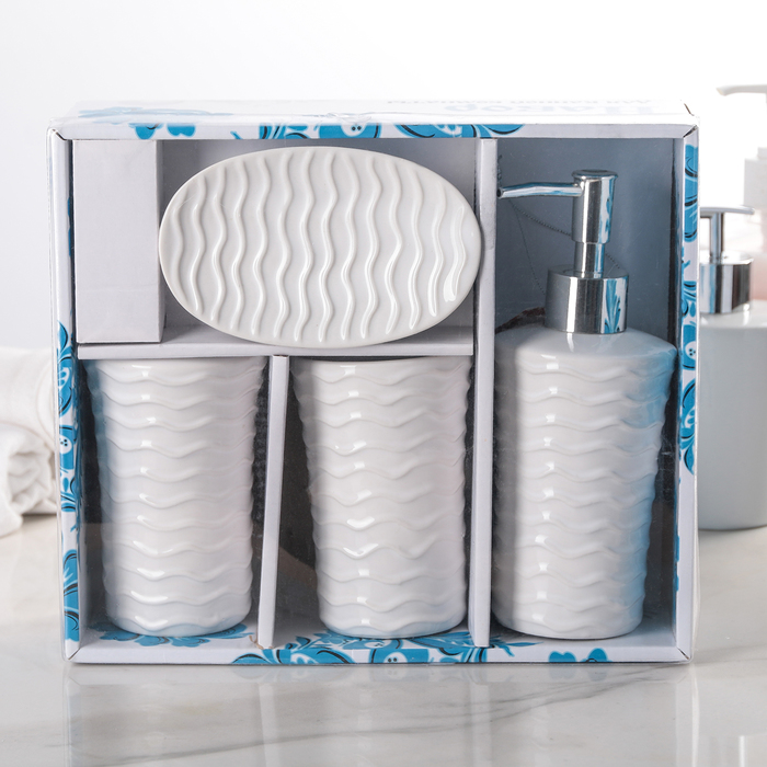 Набор аксессуаров для ванной комнаты, 4 предмета, цвет белый