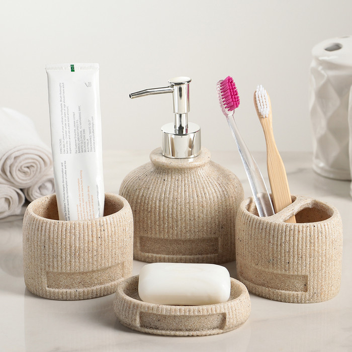 Набор аксессуаров для ванной комнаты, 4 предмета "Хато", цвет бежевый