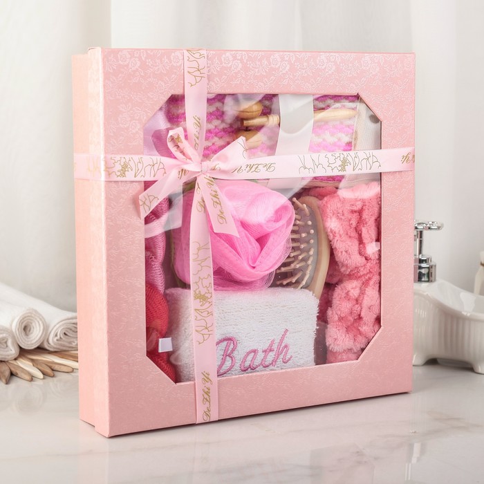 Набор банный 7 предм. (4 мочалки, повязка на голову, расческа, массажер)