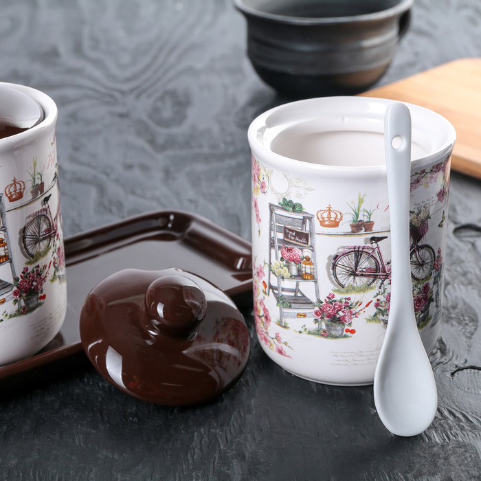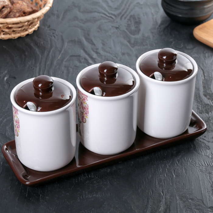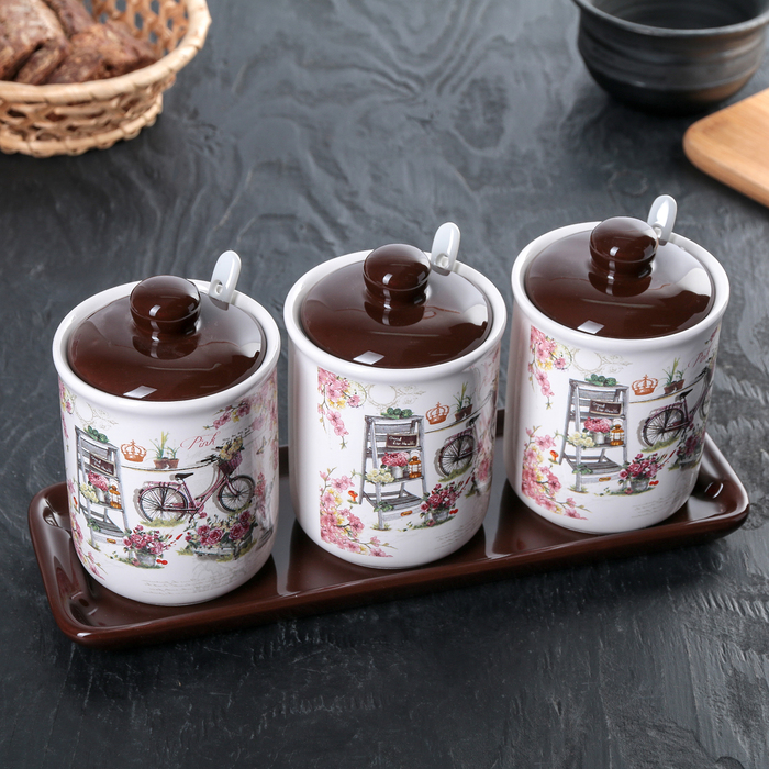 Набор банок для сыпучих продуктов 300 мл "Римские каникулы", 3 шт, с ложками, на подставке