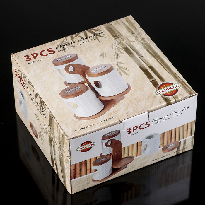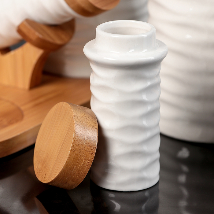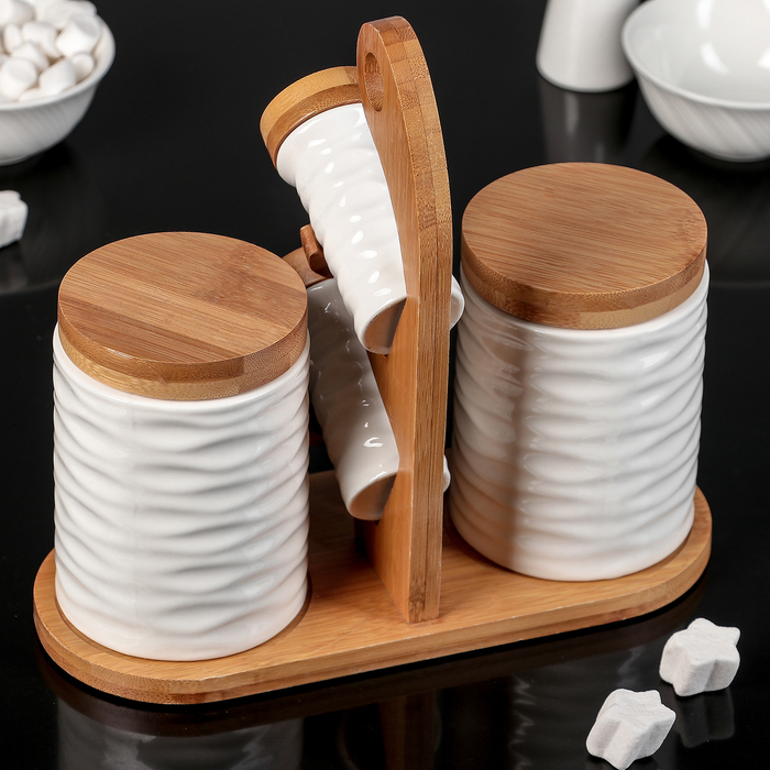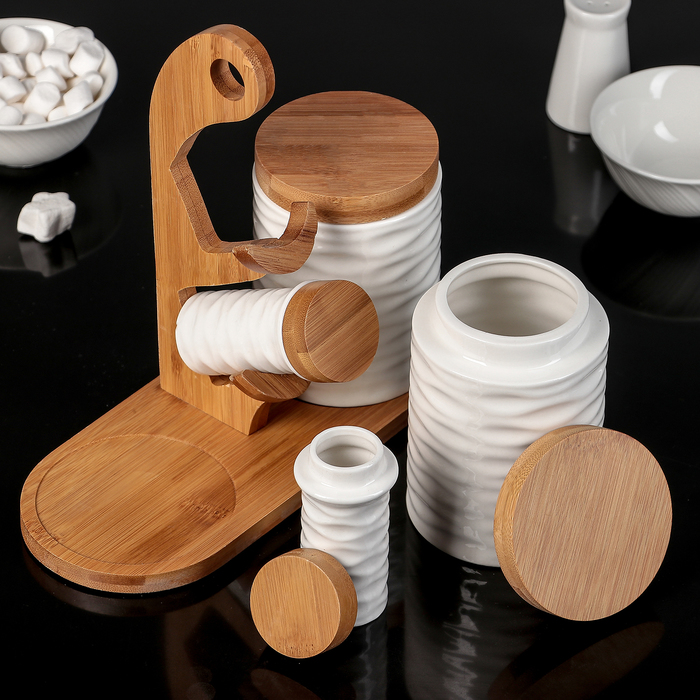Набор банок для сыпучих продуктов "Эстет", 4 шт, на деревянной подставке