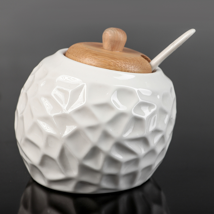 Набор банок для сыпучих продуктов "Эстет. Рельеф", 2 шт, с ложками, на деревянной подставке