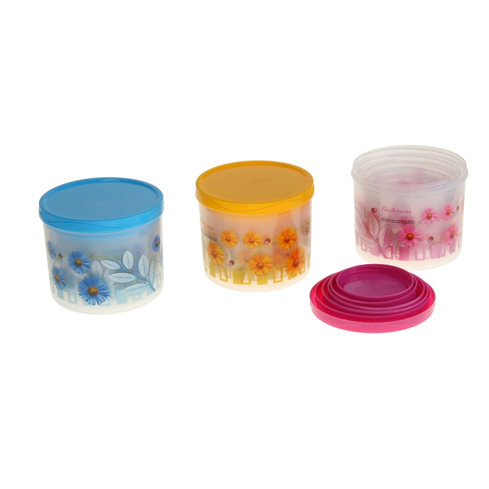 От качества посуды зависит не только вкус еды, но и здоровье человека. Набор банок для сыпучих продуктов "Маргаритки", 6 шт: 200 мл; 300 мл; 400 мл; 600 мл; 800 мл; 1 л; цвет МИКС — товар, соответствующий российским стандартам качества. Любой хозяйке будет приятно держать его в руках. С нашей посудой и кухонной утварью приготовление еды и сервировка стола превратятся в настоящий праздник.