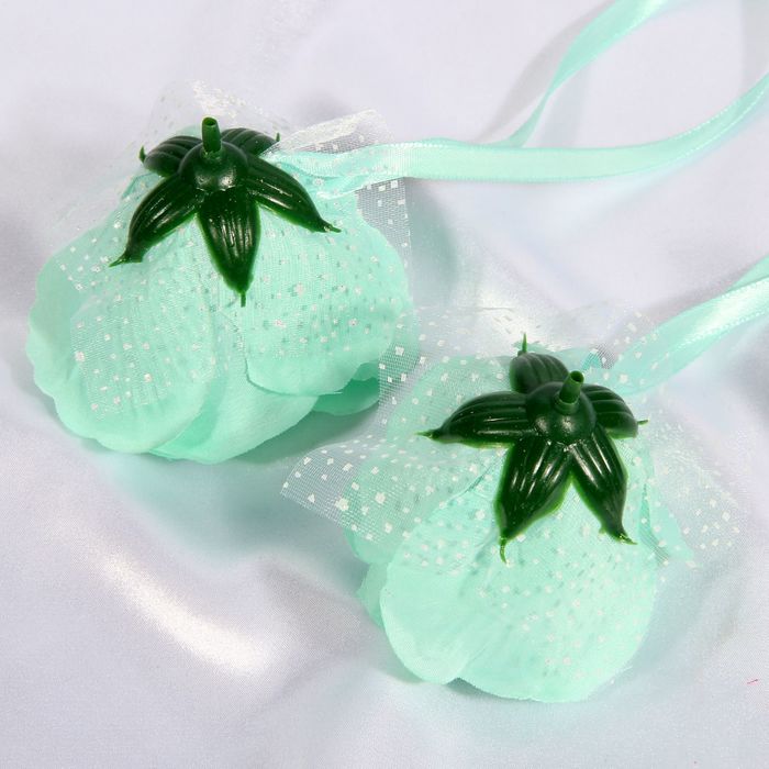 Чудесный набор для декора свадебного автомобиля состоит из двух цветов на лентах. Украсьте с его помощью ручки машины, зеркала или капот. Текстильные цветы также можно использовать при оформлении зала или свадебных бокалов.