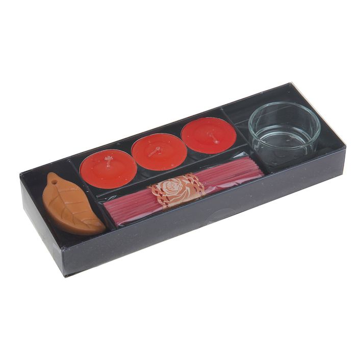 Набор благовоний "Пробуждение": 10 аромапалочек, 3 свечи, подсвечник, подставка, аромат клубника