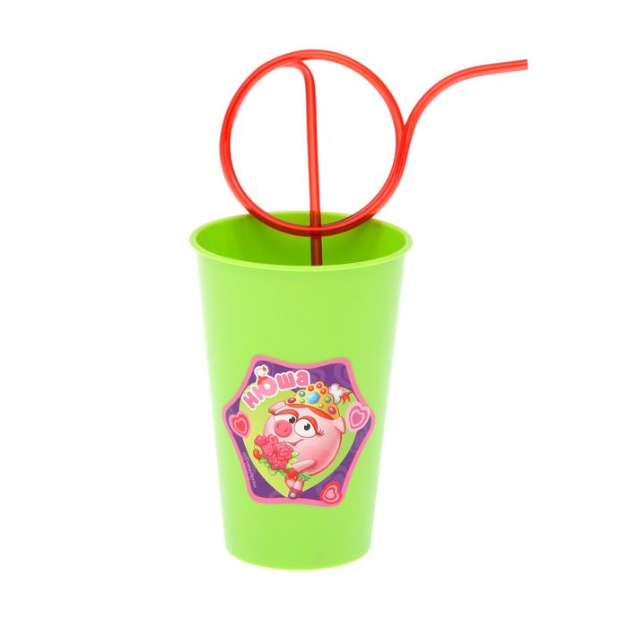Набор бокалов 2 шт 500 мл СМЕШАРИКИ (салат)+трубочка спининг