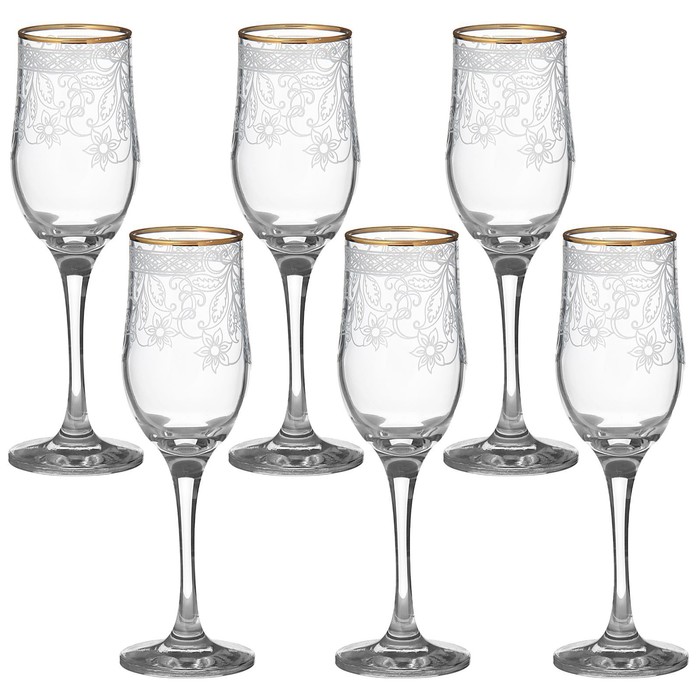 Набор бокалов 200 мл "Акация", 6 шт, гравировка, отводка золотом