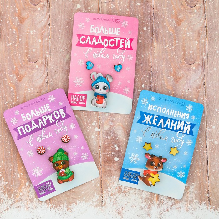 Ни один стиляга не будет выглядеть современно без искусно подобранных украшений, которые завершат его образ! Бижутерия — это современная недорогая альтернатива изделиям из золота и прочих драгоценных металлов. Набор "Больше сладостей", значок, серёжки — это то, что добавит вам шарма!