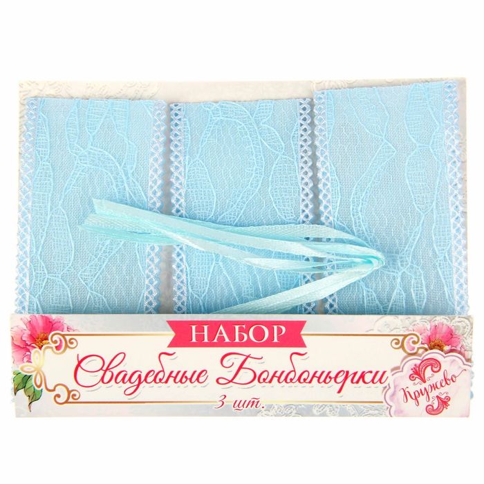 Набор бонбоньерок для свадьбы "Сладкий комплимент", голубой, 3 шт