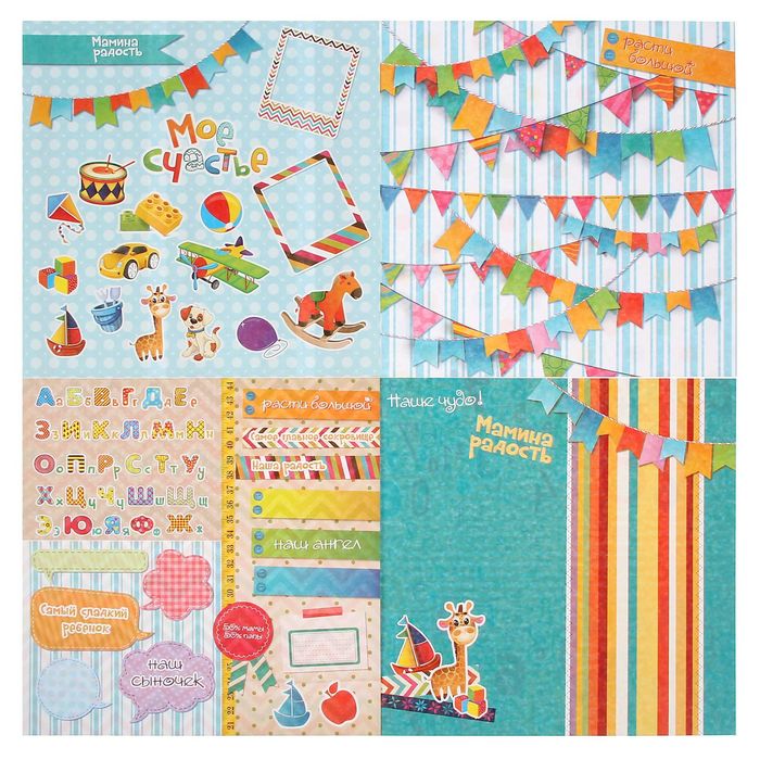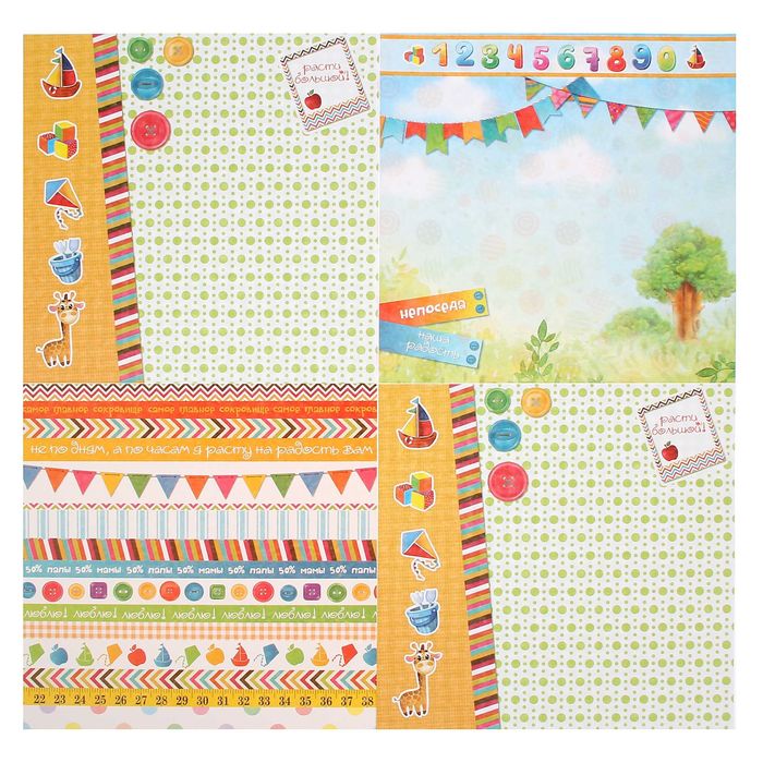 Набор бумаги для скрапбукинга «Счастливое детство», 12 листов, 30,5 х 30,5 см 180 г/м