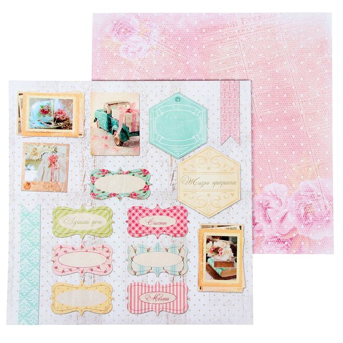 Бумага для творчества — излюбленный декор скрап-мастериц. Изделие можно использовать целиком, наклеив на основу, или кусочками, нарезав фигуры нужного размера. Бумага пригодится при оформлении рамок и альбомов, открыток и блокнотов — вас ничто не ограничивает. Рисунки в наборе прекрасно сочетаются между собой.