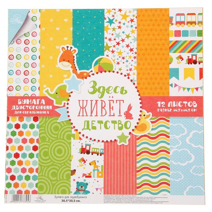 Набор бумаги для скрапбукинга «Здесь живет ДЕТСТВО», 12 листов, 30,5 х 30,5 см, 180 г/м
