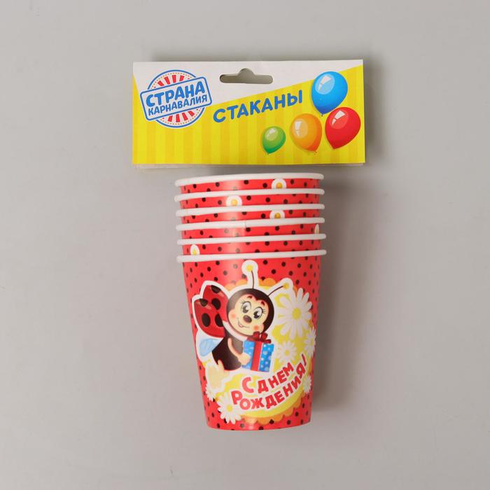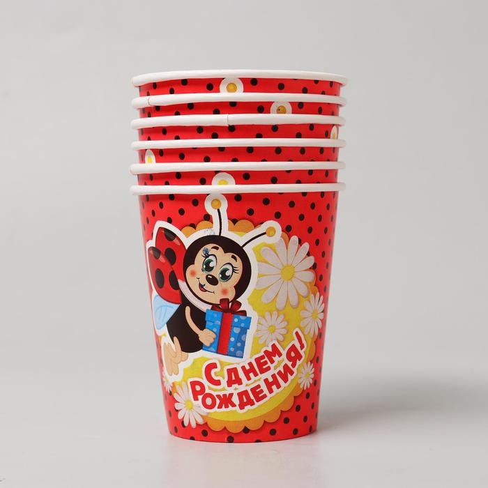 Набор бумажных стаканов "С Днём Рождения", божья коровка, 250 мл, 6 шт.