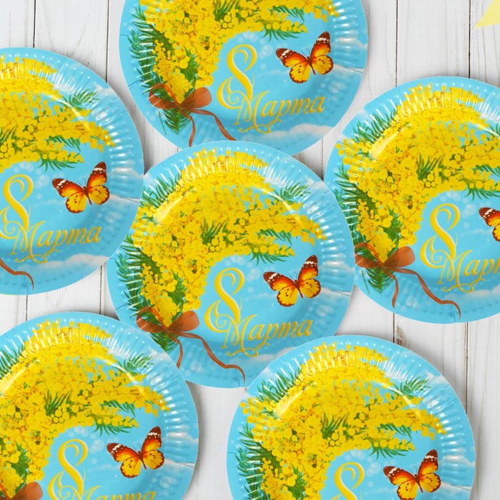 Набор бумажных тарелок "8 марта" (6 шт.), 18 см