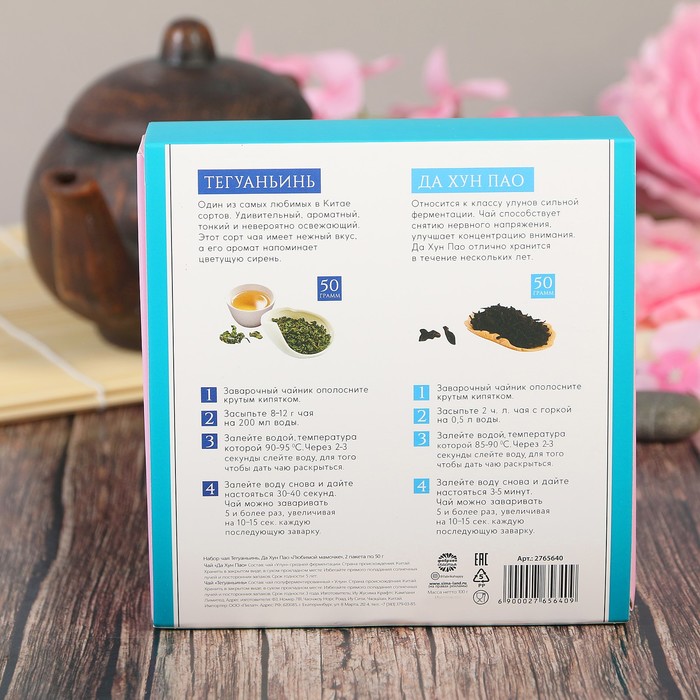 До сих пор на чай принято приглашать друзей и знакомых. С него начинают рабочий день или, наоборот, создают неформальную обстановку. Набор чая Тегуаньинь, Да Хун Пао "Любимой бабушке", 2 пакета по 50 г подарит вам не одну минуту наслаждения и душевного спокойствия.