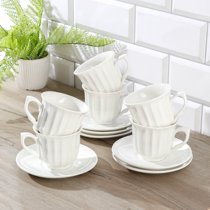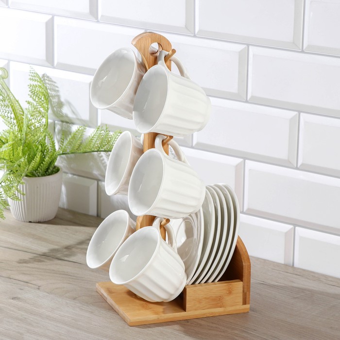Набор чайный на деревянной подставке "Эстет", 12 предметов: 6 чашек d=8,6 см 200 мл, 6 блюдец 14,5х10,6 см