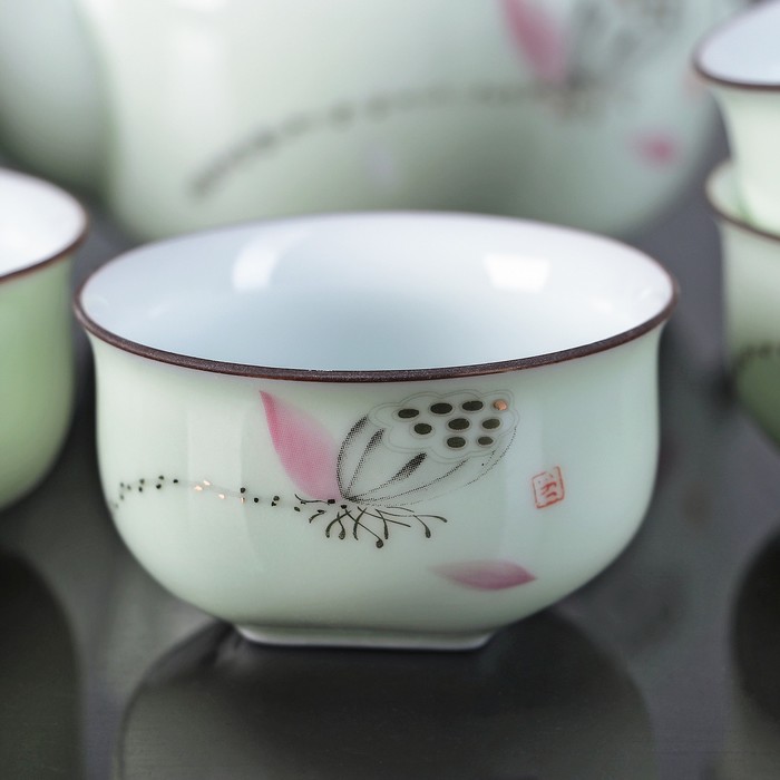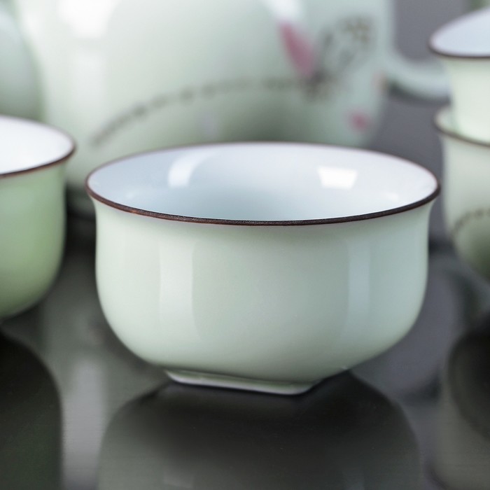 Набор чайный "Нежность", 7 предметов: чайник 150 мл, пиала 50 мл, цвет зеленый