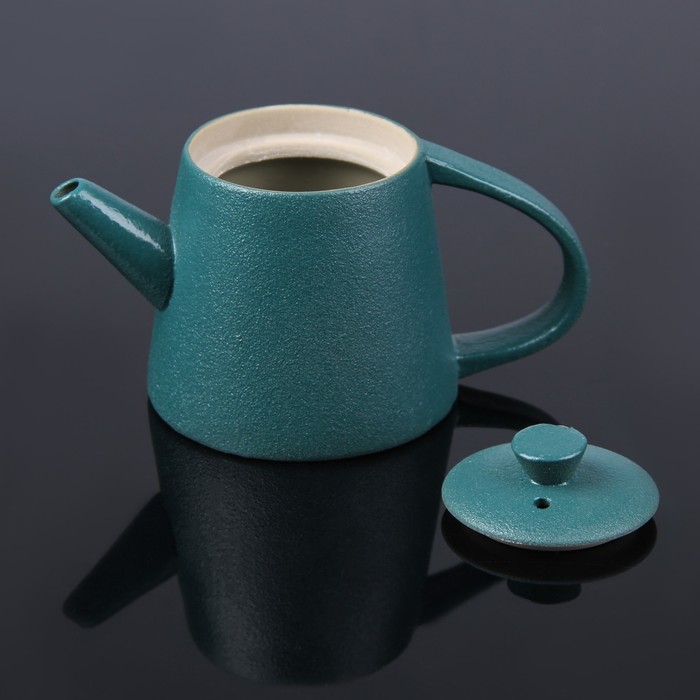 Набор чайный "Восход", 7 предметов: чайник 200 мл, пиала 80 мл, цвет зелено-голубой УЦЕНКА