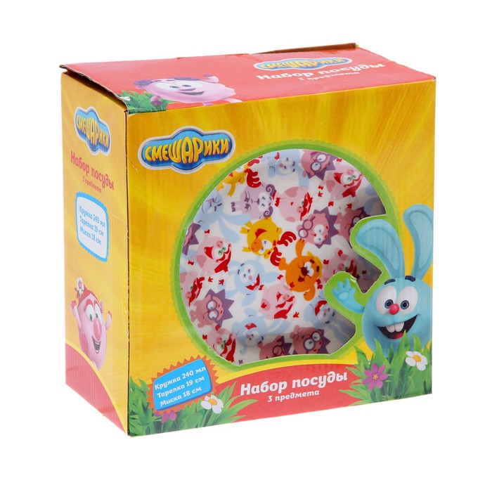 Набор "Смешарики", 3 предмета: кружка 240 мл, миска d=18 см, тарелка d=19 см